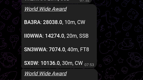 Ulteriore problemino si presenta molto spesso quando parlando solo del CW. alcune stazioni scrivono che entrano nelle operazioni, ma indicano la frequenza del FT8 !! per esempio qui vedi un BOT telegram di SX0W che dovrebbe essere in CW a 10,136 ! frequenza del FT8 !