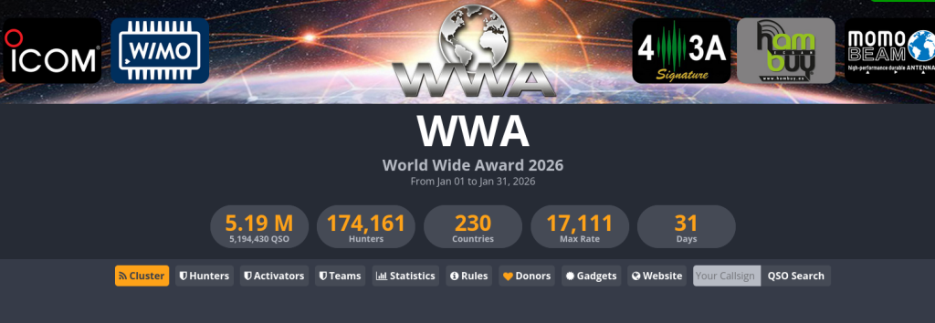 Anche quest’anno ho deciso di partecipare al WWA 2026, dopo il risultato un pò inaspettato del 2025 per me, visto che non ho al mio attivo praticamente partecipazioni a contest importanti.
